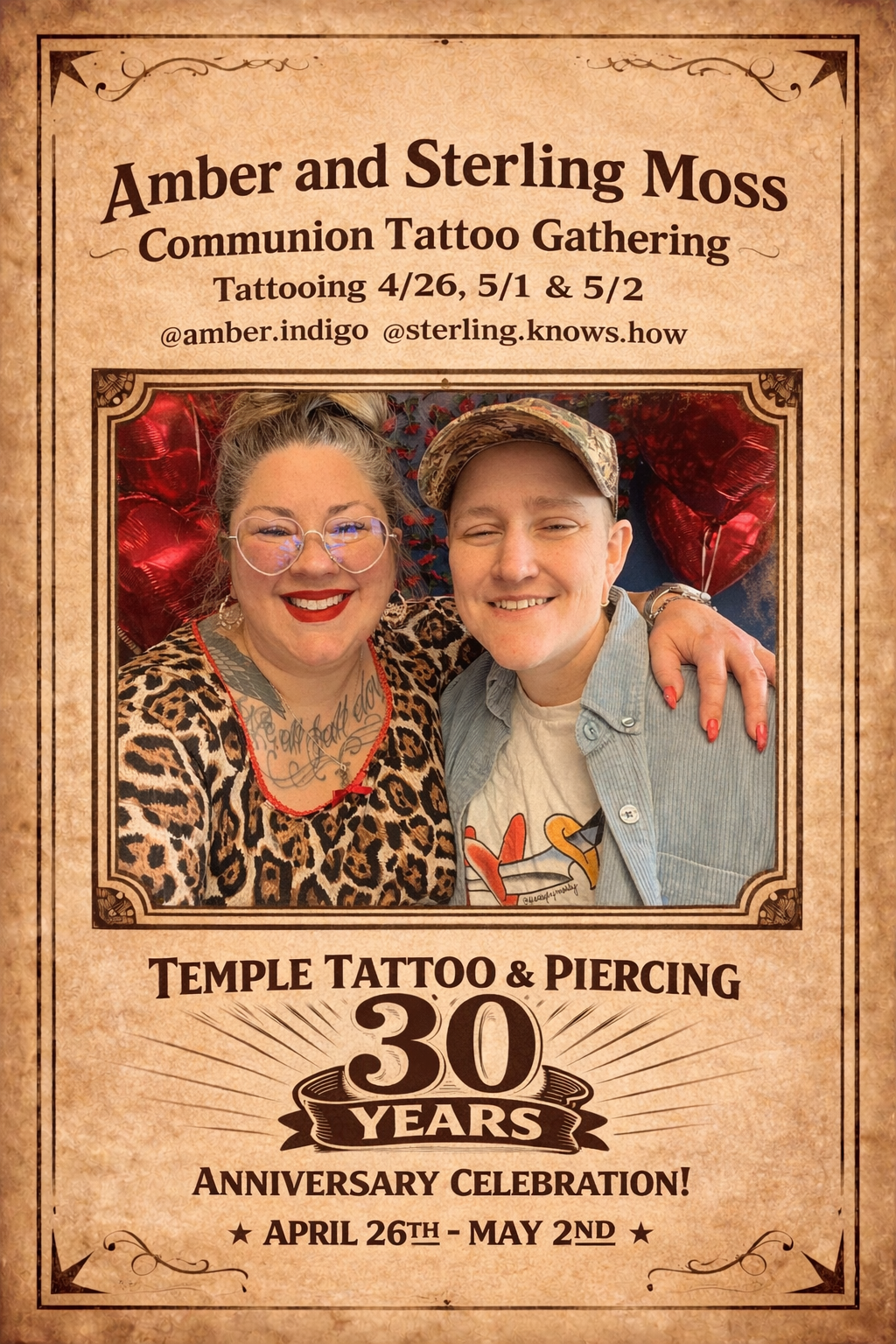 We’re so excited to welcome Amber & Sterling Moss to our 30th Anniversary Celebration at Temple Tattoo & Piercing! 🖤