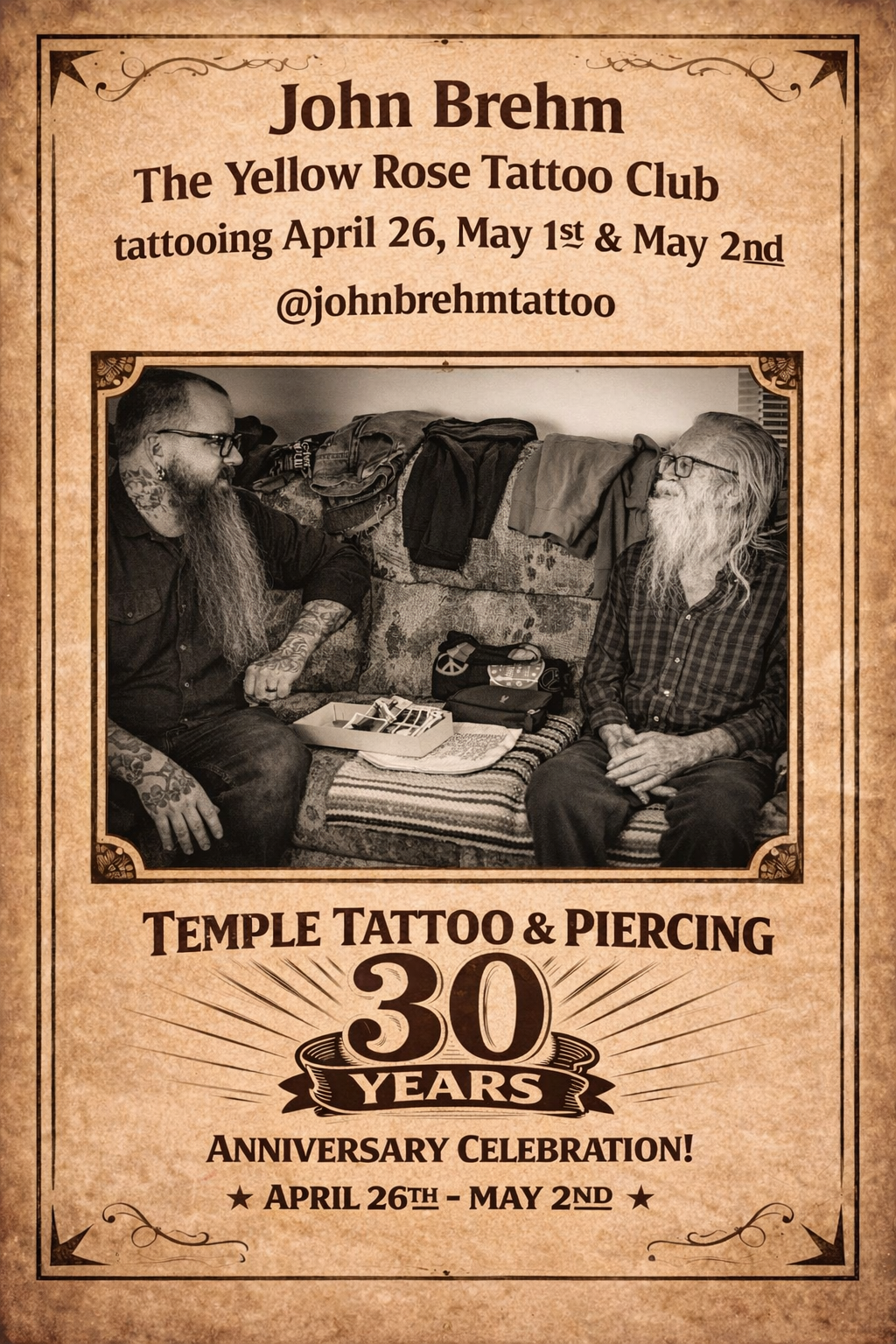John of The Yellow Rose Tattoo Club will be tattooing April 26th, May 1st & May 2nd—don’t miss your chance to get tattooed by one of the real ones. Please reach out to him directly to book 👉🏻 @johnbrehmtattoo
