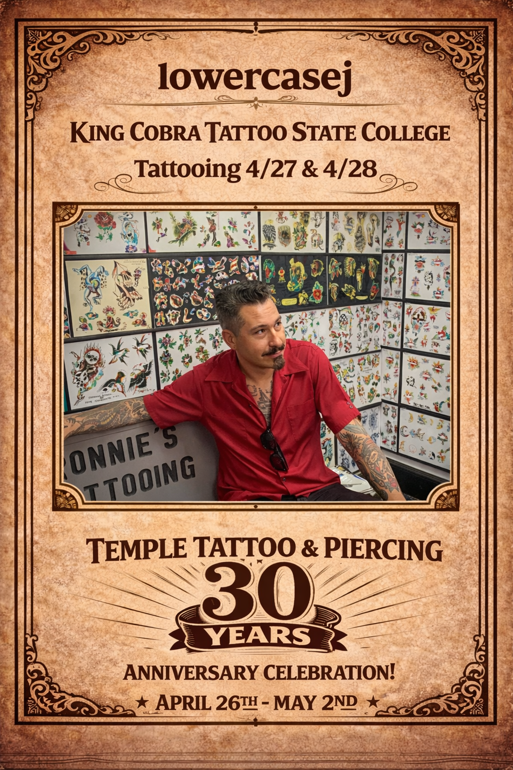 From King Cobra Tattoo State College, lowercasej will be tattooing