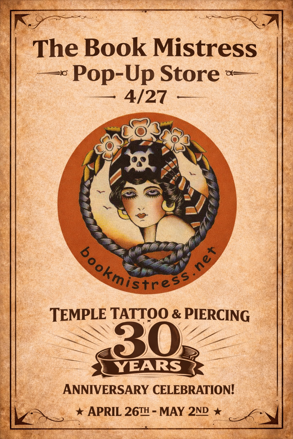 She’ll be set up at the Ohio Tattoo Museum on Monday 4/27 during our 30th Anniversary Celebration. Stop by for books, tattoo history, and great finds!