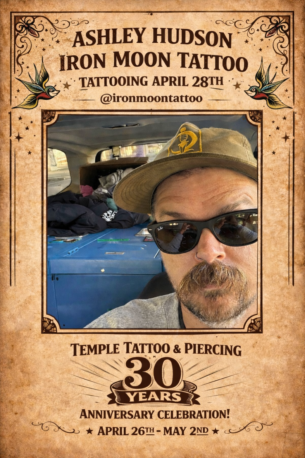 We’re excited to have him be part of this week celebrating 30 years of tattooing, tradition, and community.